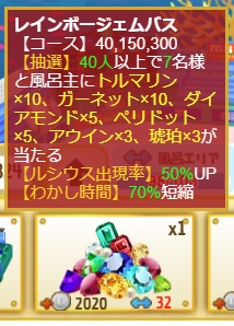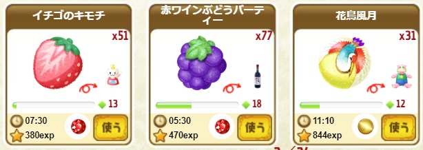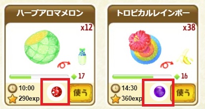 上のスクショだと、ハーブアロマメロンからはガーネット、トロピカルレインボーからはアメジストが出現します。
