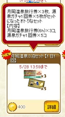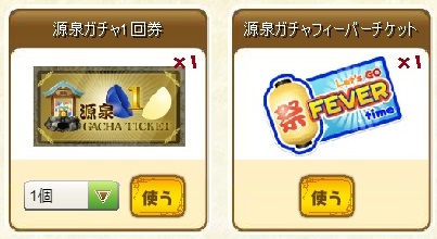 温泉では「源泉ガチャ券」および「源泉ガチャフィーバー券」を、