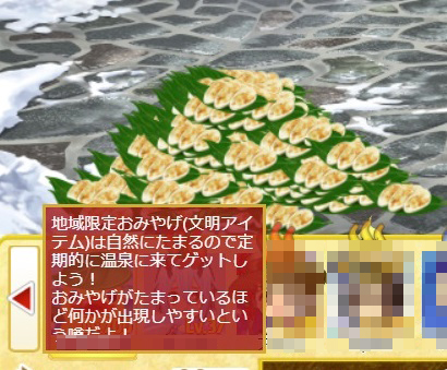 お土産は、その温泉地・ワンダーランドに滞在するだけで手に入れることができる文明アイテムです。