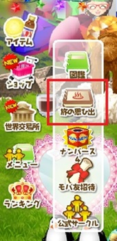 旅行に行った思い出は、メニューの「旅の思ひ出」から確認できます。