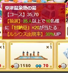 もらえる速度は(120秒に一個とか)温泉地などにより変わります。