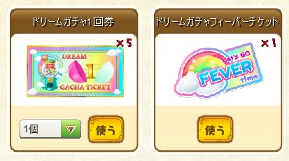 ワンダーランドでは「ドリームガチャ券」および「ドリームガチャフィーバー券」を使用して、ガチャを回します。